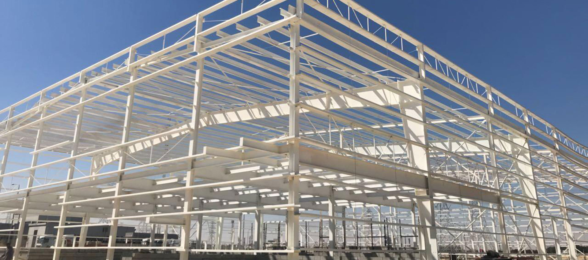 - Modular steel frames: columns, rafters, purlins, and bracing systems.